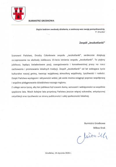 Dziękujemy za te wszystkie lata muzycznych wzruszeń, zaangażowania i konsekwentnego pielęgnowania lokalnej tradycji. Życzymy kolejnych lat pełnych pasji, wspólnych występów i niegasnącej radości ze śpiewania.
