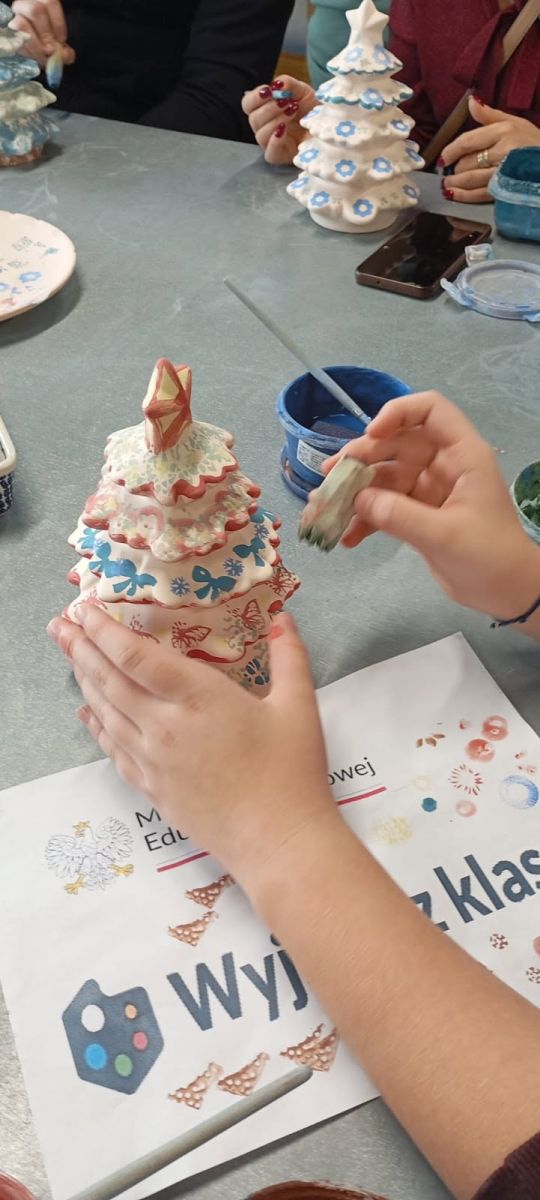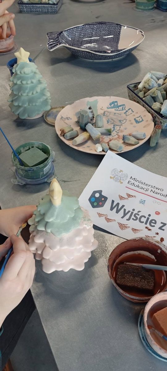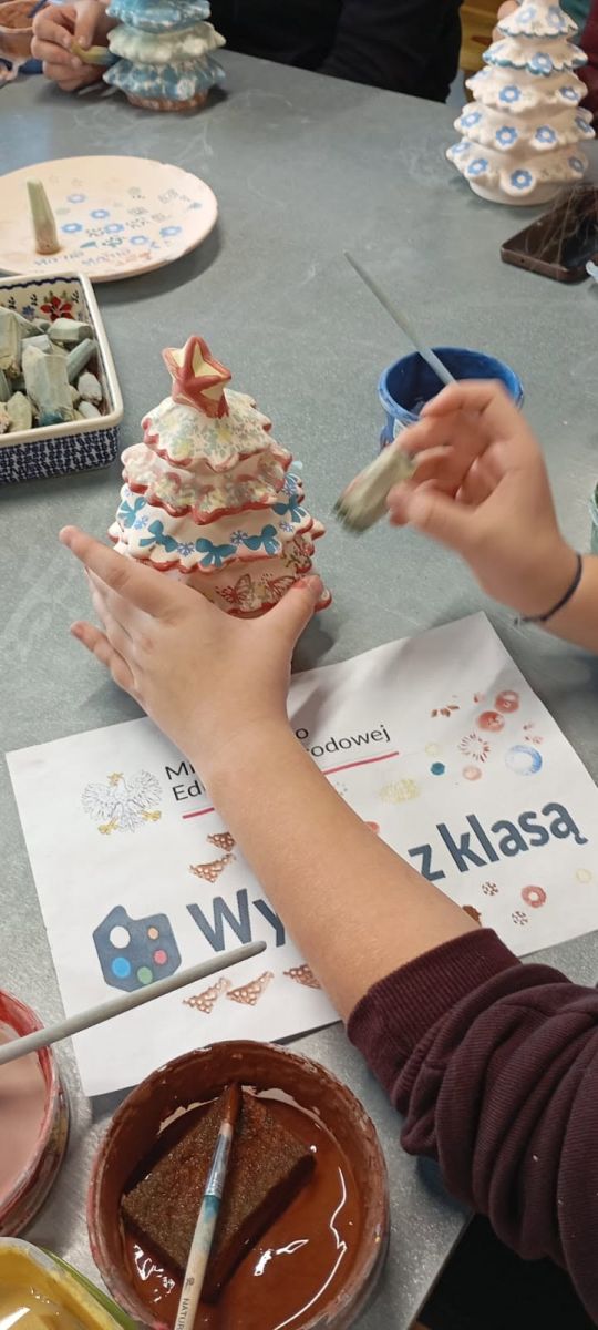 Podczas wizyty dzieci miały okazję zapoznać się z historią Bolesławieckiej ceramiki, znanej i cenionej nie tylko w Polsce, ale również na całym świecie. Jednak największą atrakcją wycieczki były warsztaty ceramiczne, w których uczniowie aktywnie uczestniczyli. Każde dziecko mogło samodzielnie pomalować ceramiczną choinkę, wykorzystując tradycyjne motywy oraz własną wyobraźnię. W trakcie pracy było mnóstwo zabawy, ponieważ pracownicy oprócz wyjaśniania tajników garncarskiego fachu organizowaniu zabawy i quiz. Praca twórcza sprawiła dzieciom ogromną radość i pozwoliła im poczuć się jak prawdziwi artyści ludowi. Warto nadmienić, że prace twórcze dzieci trafią do pieca i będą wypalane w wysokiej temperaturze oraz wysłane do szkoły, aby mogły trafić do młodych artystów jeszcze przed świętami.