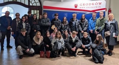 Klasa 8 ze Szkoły Podstawowej w Lipowej z wizytą w Urzędzie Miejskim w Grodkowie