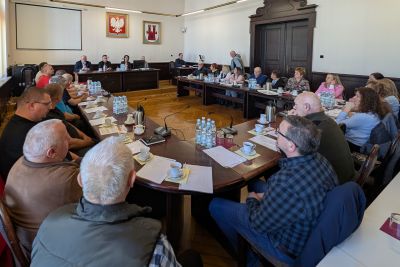 W spotkaniu udział wzięli: Burmistrz Miłosz Krok, Skarbnik Klaudia Tamaka, Sekretarz Łukasz Chwawko oraz kierownik Wydziału Finansowego Urszula Olenkiewicz-Martyniszyn.