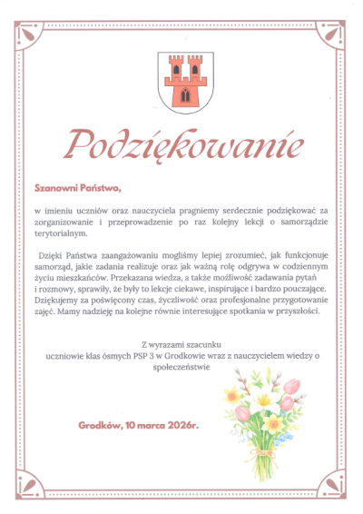 Uczniowie byli aktywni, zadawali pytania i z zainteresowaniem uczestniczyli w spotkaniu. Cieszymy się, że takie lekcje pozwalają młodym mieszkańcom lepiej zrozumieć, jak działa samorząd i jak ważną rolę odgrywa w życiu lokalnej społeczności.